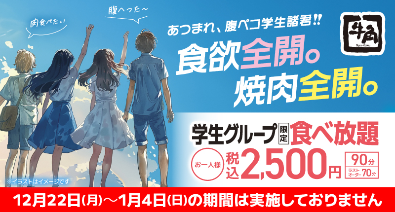 【平日限定】学生グループ限定コースが税込2,500円!